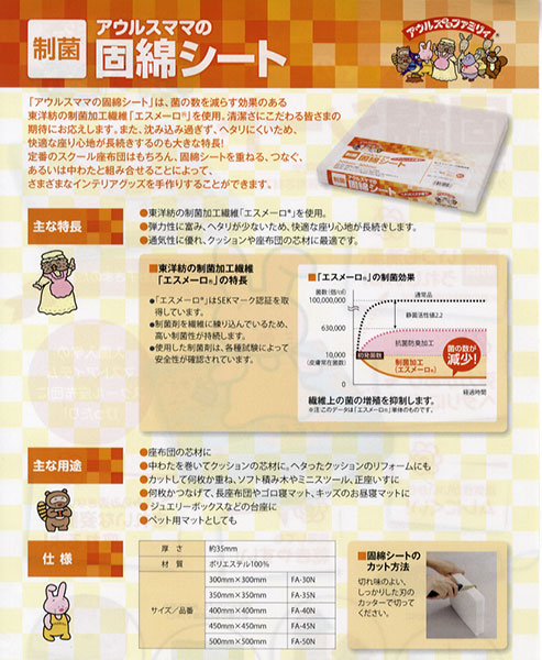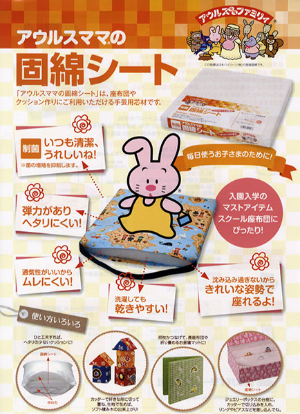 | 品名 | つや綿 | ラビッシュ | ぽんぽこわた | クラフトわた | つぶつぶわた |