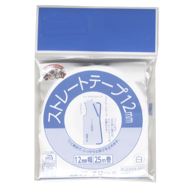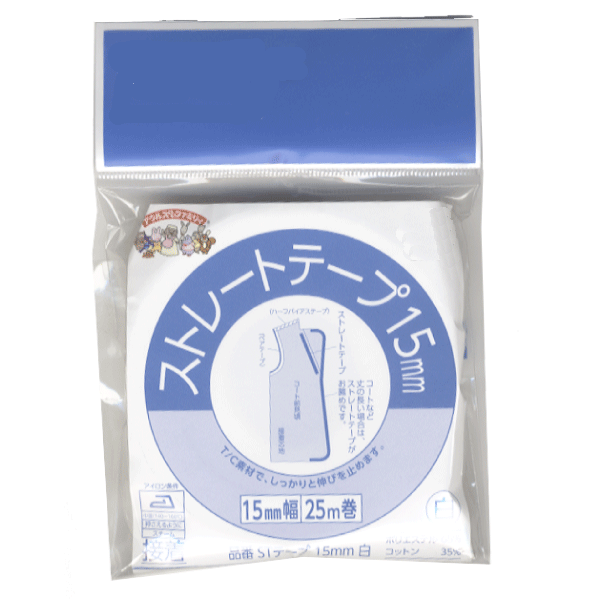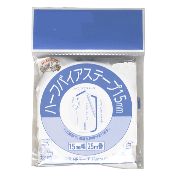 中肉~厚手素材 しっかりと伸びを止めます 少し硬めのハーフバイアスの接着テープです |
