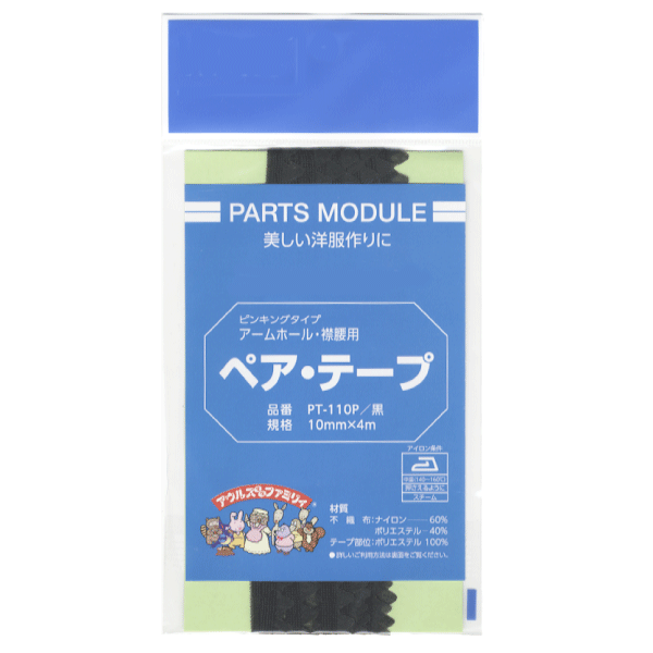 巾10mm×4m 組成:ナイロン60% ポリエステル40% ポリエステル100% (テープ部分) カラー:白/黒 |